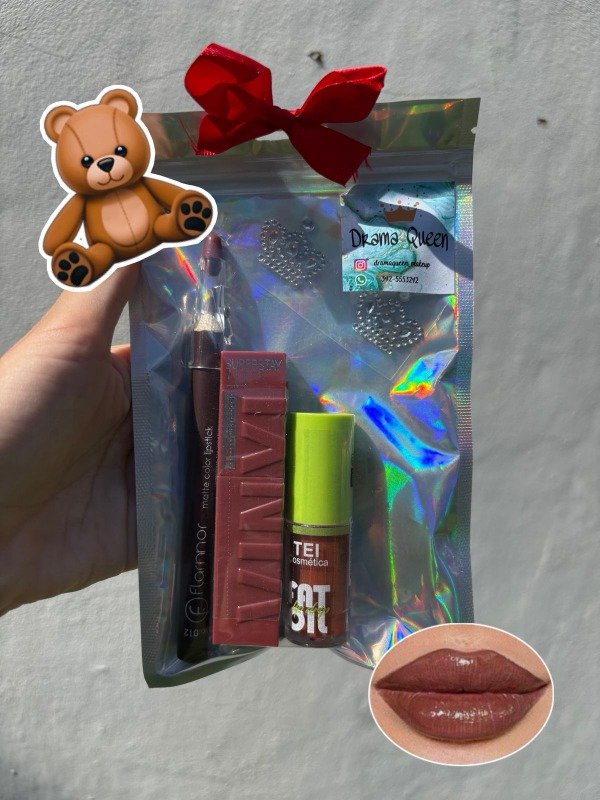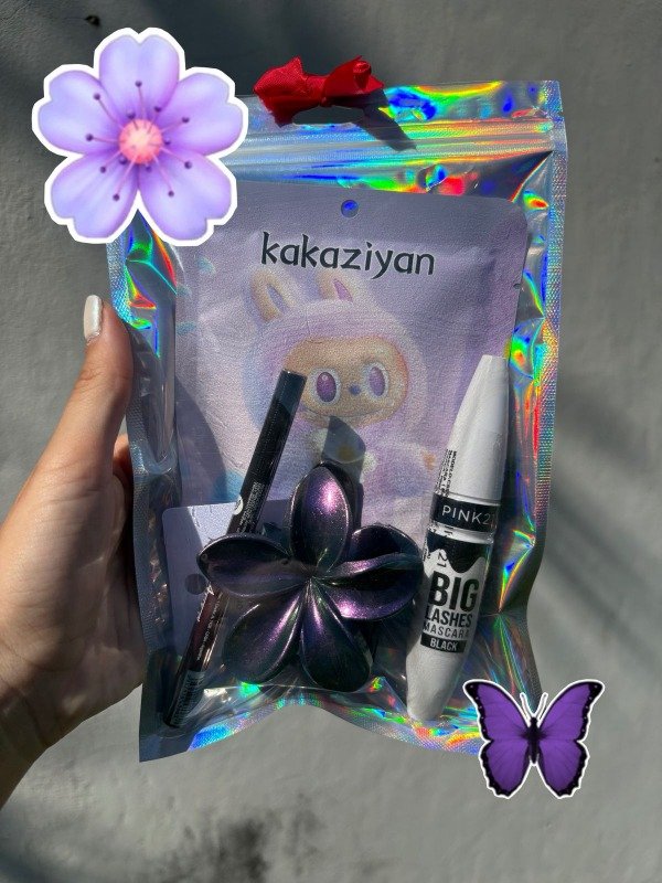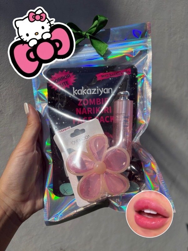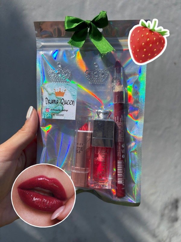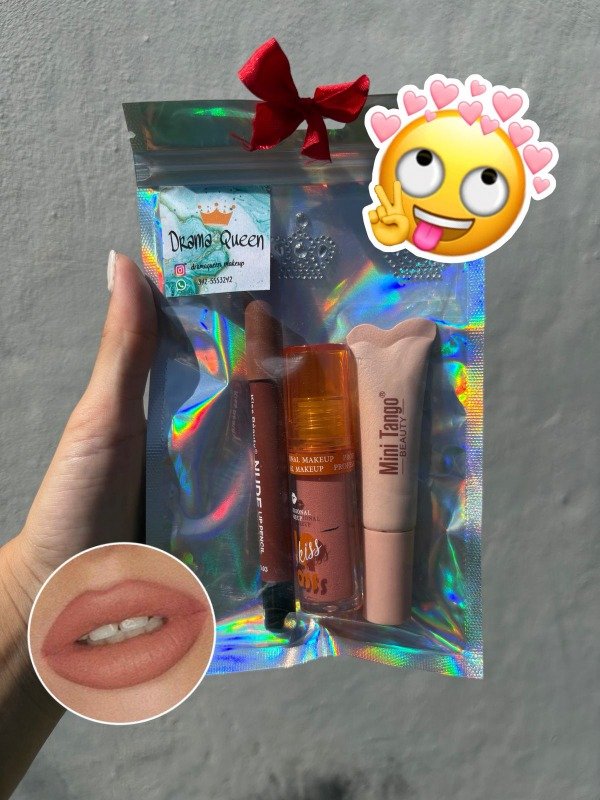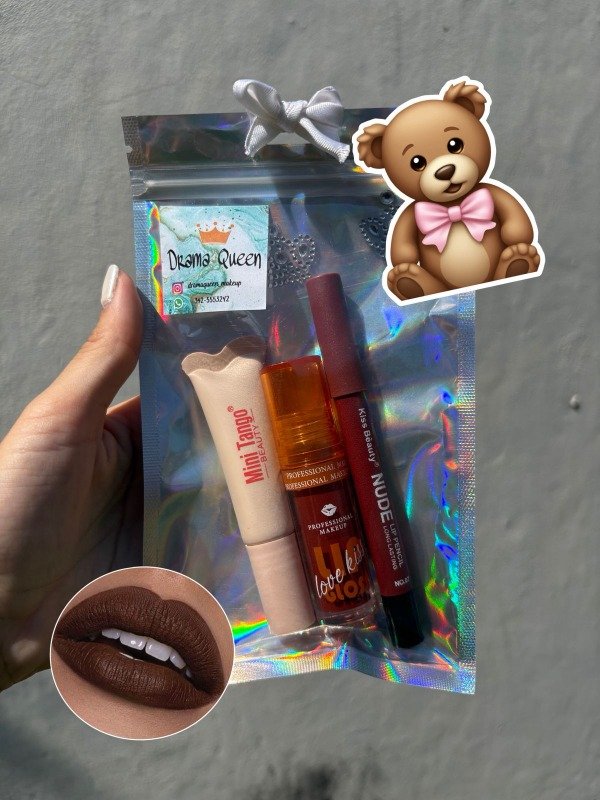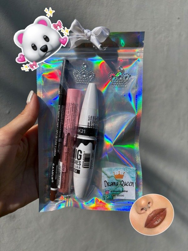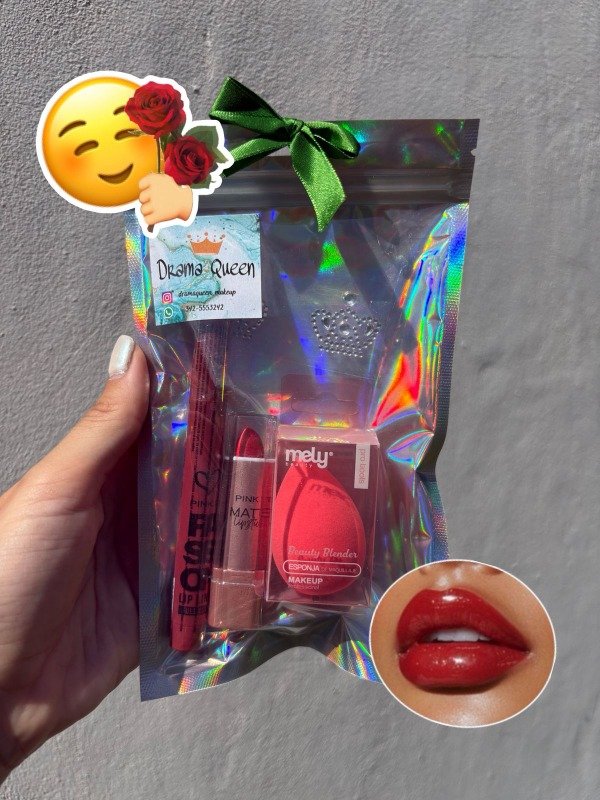 Todos los combos tienen variedades diferentes de productos como broche de pelo, balsamo, labial matte, delineador, mascarilla, máscara de pestañas, esponja, etc.
